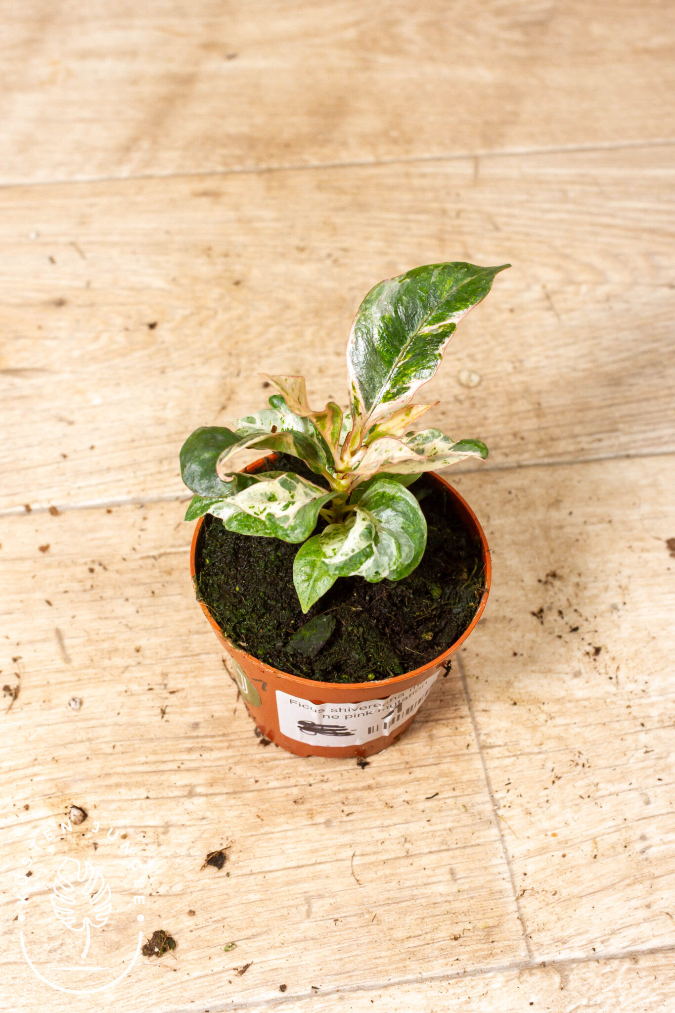 Du bekommst genau die Pflanze, die du auf den Fotos siehst. Normalerweise verschwinden die pinken Anteilen bei älteren Blättern aber bei der Pflanze scheinbar nicht.